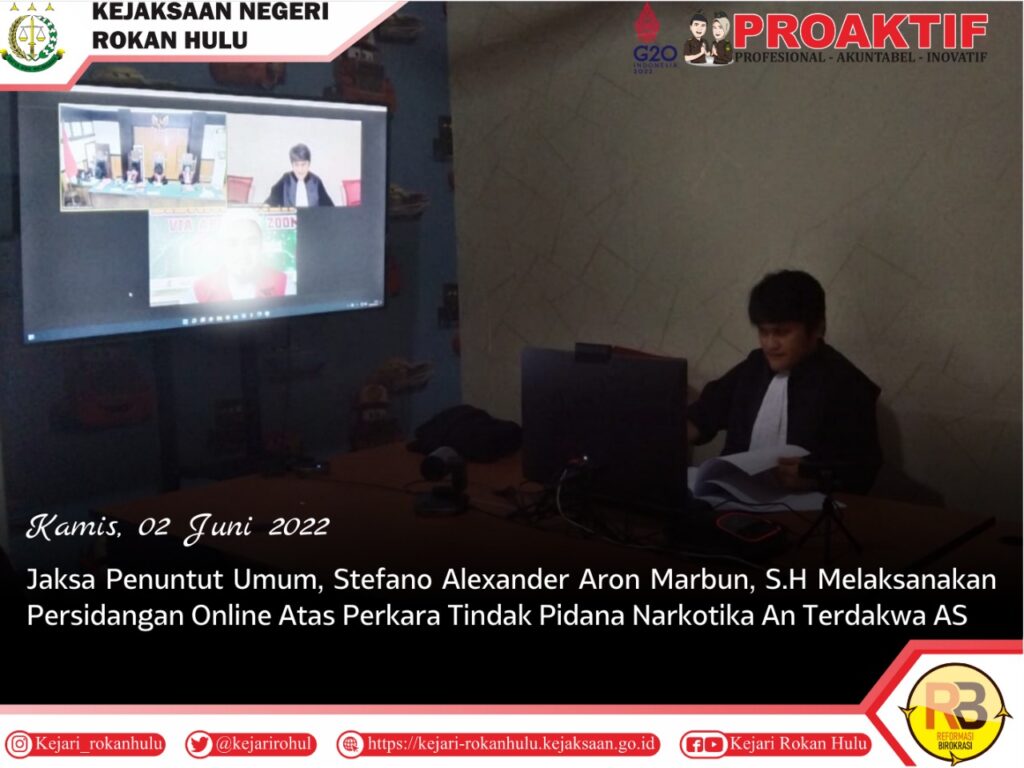 Post Persidangan Online atas Perkara Tindak Pidana Narkotika An Terdakwa AS June 2, 2022 No Comments Pages: 1 2 Previous Post Next Post You may also like October 17, 2022 Pelatihan Peningkatan Kapasitas Manajemen BUMDesa Kecamatan Pendalian IV Koto Kabupaten Rokan Hulu October 6, 2022 Tahap II Terhadap Tersangka Berinisial IM atas Perkara Narkotika. May 4, 2023 Vicon Kunjungan Kerja Jaksa Agung Republik Indonesia Leave a Reply Cancel replyYour email address will not be published. Required fields are marked *Comment * Name * Email * Website Save my name, email, and website in this browser for the next time I comment. Δ