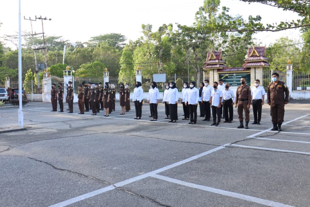 Kepala Seksi Pengelolaan Barang Bukti dan Barang Rampasan, Eka Mulia Putra, S.H. Memimpin Apel Pagi yang diikuti oleh seluruh Pegawai Kejaksaan Negeri Rokan Hulu.