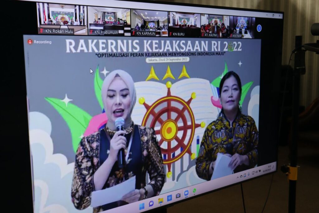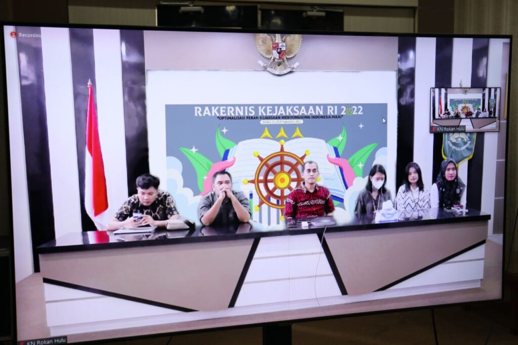Pada hari Jumat tanggal 30 September 2022, Kepala Seksi Pengelolaan Barang Bukti dan Barang Rampasan, Eka Mulia Putra, S.H. dan Kepala Seksi Tindak Pidana Khusus, Susanto Martua Ritonga, S.H Beserta Pegawai Kejaksaan Negeri Rokan Hulu Menghadiri Vicon Terkait Acara Penutupan Rangkaian Rapat Kerja Teknis (RAKERNIS) Kejaksaan Republik Indonesia Tahun 2022.