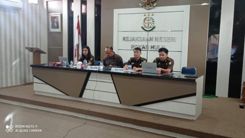 Pada hari Kamis tanggal 16 Maret 2023, Kepala Kejaksaan Negeri Rokan Hulu, Fajar Haryowimbuko, SH., MH. dan Kepala Seksi Tindak Pidana Umum Beserta Jaksa Penuntut Umum, Agung Arda Putra SH., MH. dan Nurul Anissa, SH. Melaksanakan Vicon Ekspose Pengusulan Penghentian Penuntutan Berdasarkan Keadilan Restorative Justice.